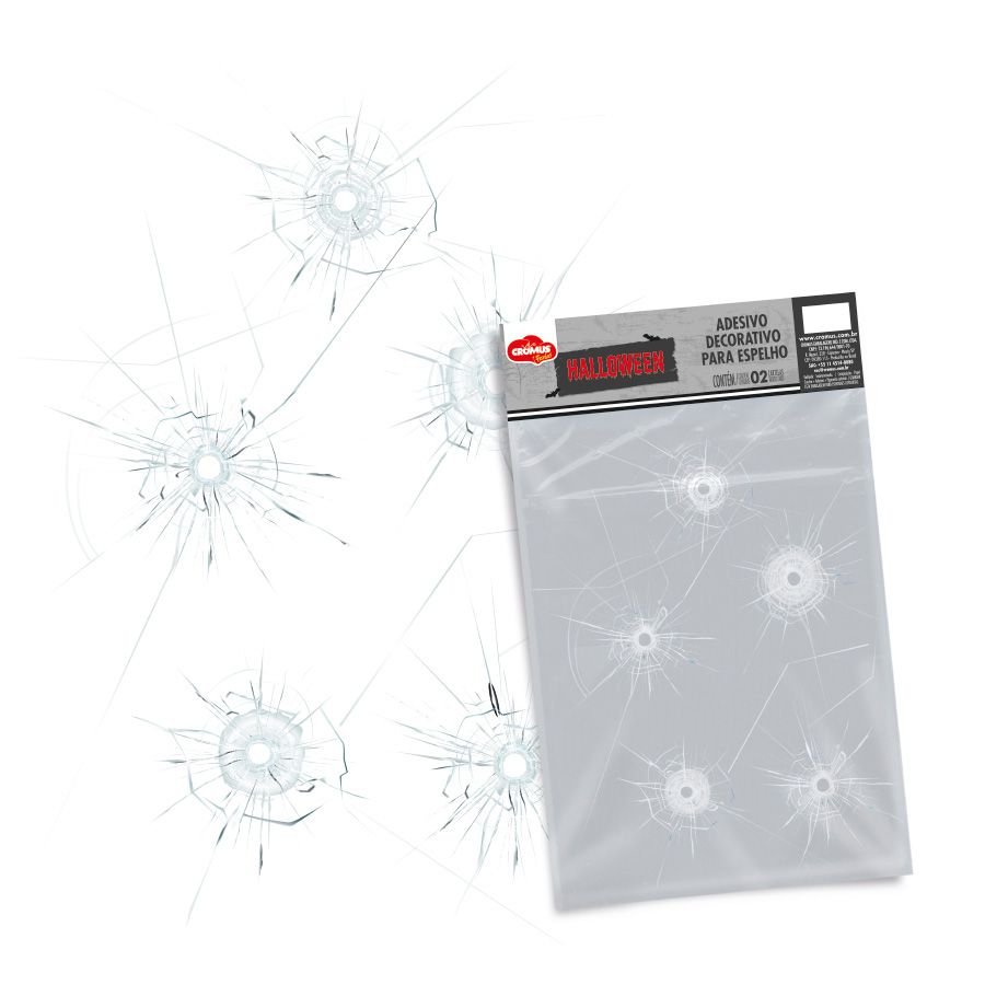 Adesivo decorativo temático para Halloween com estampa de tiro em vidro.