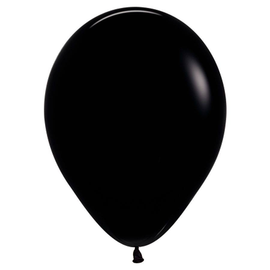 Pacotes de balões Fashion na cor preto 080. Nos tamanhos 5'' com 13 centímetros, tamanho 12'' com 28 centímetros e tamanho 24'' com 60 centímetros