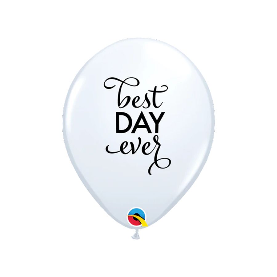1 pacote com 50 unidades do balão Best Day Ever (Melhor Dia de Todos) Branco.