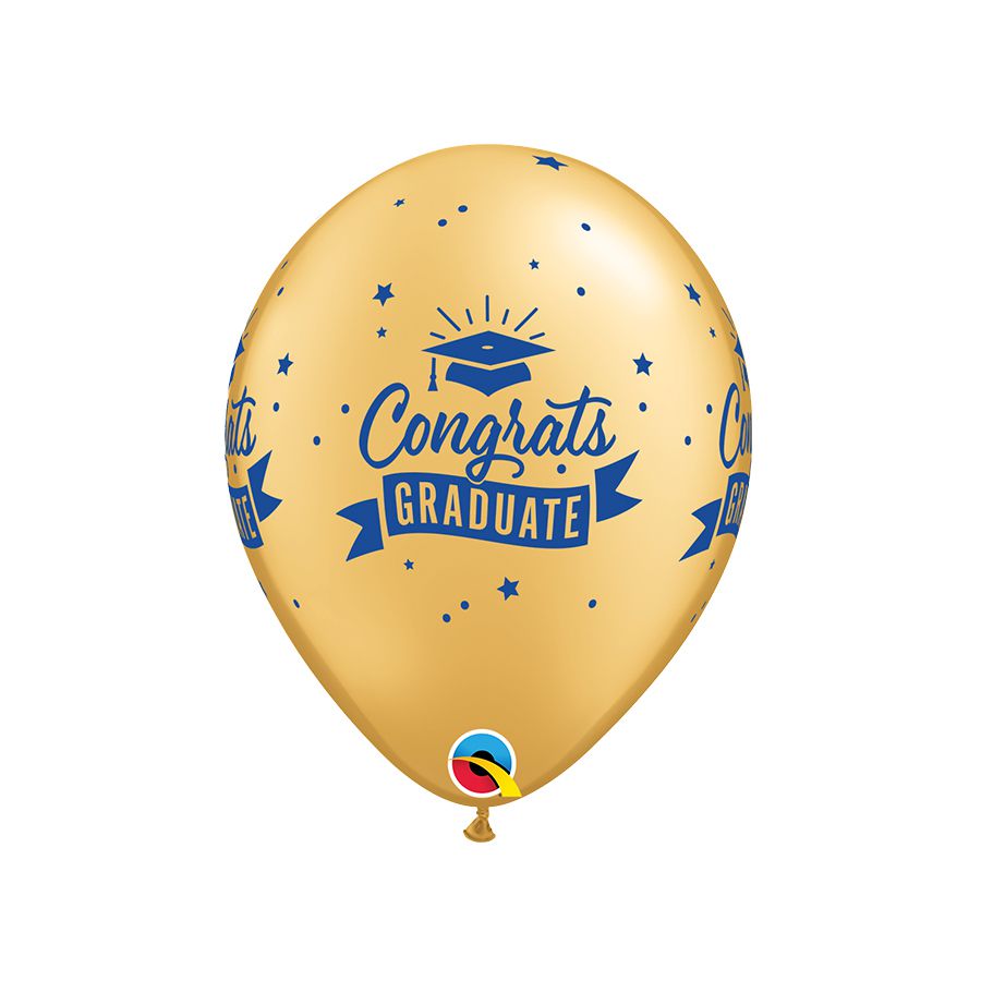 Látex 11 polegadas, aproximadamente 28 cm Contém 50 unidades. 1 pacote com 50 unidades do balão Congrats Graduate ( Parabéns Graduado) na cor Ouro e Azul. Aqui tudo é de extrema qualidade. Transformamos simples momentos, em grandes realizações.Composição: