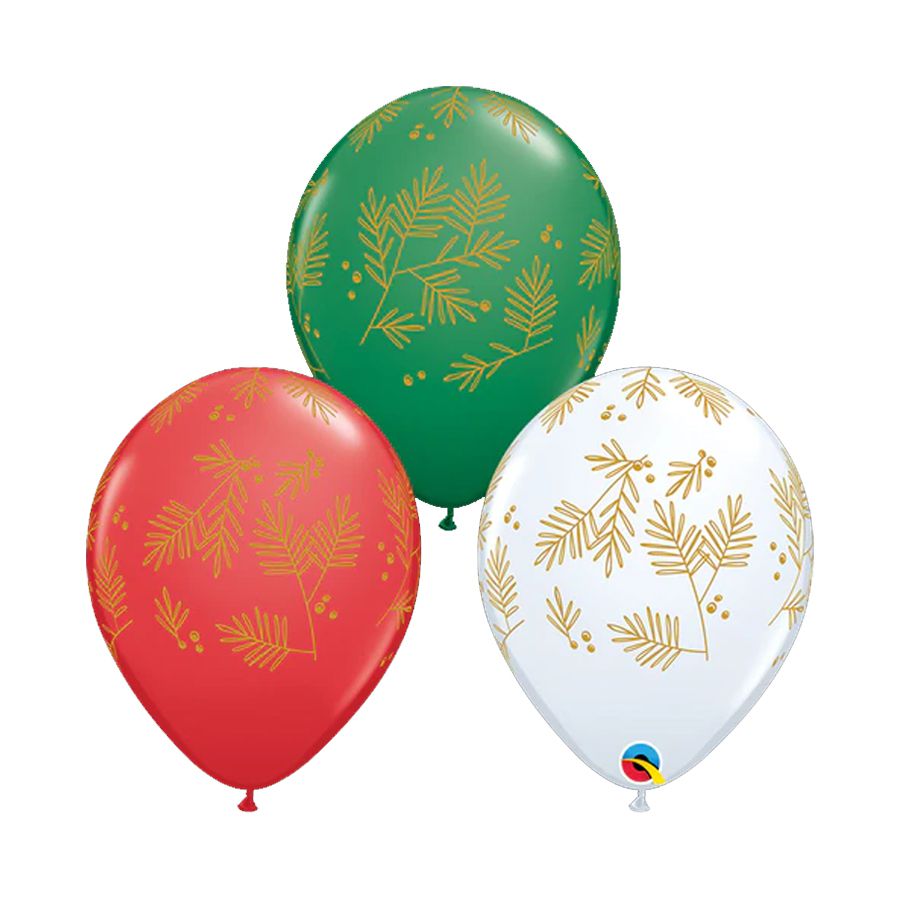 Látex 11 polegadas, aproximadamente 28 cm Contém 50 unidades. 1 pacote com 50 unidades do balão Folhagem Contemporânea Sortido nas cores branco,verde e vermelho. Aqui tudo é de extrema qualidade. Transformamos simples momentos, em grandes realizações.Composição: