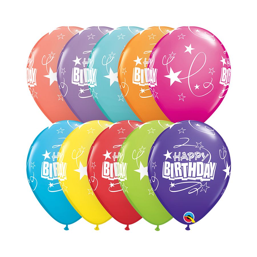 Látex 11 polegadas, aproximadamente 28 cm Contém 6 unidades. 1 pacote com 6 unidades do balão Happy Birthday (Feliz Aniversário) Laços e Estrelas. Aqui tudo é de extrema qualidade. Transformamos simples momentos, em grandes realizações.Composição: