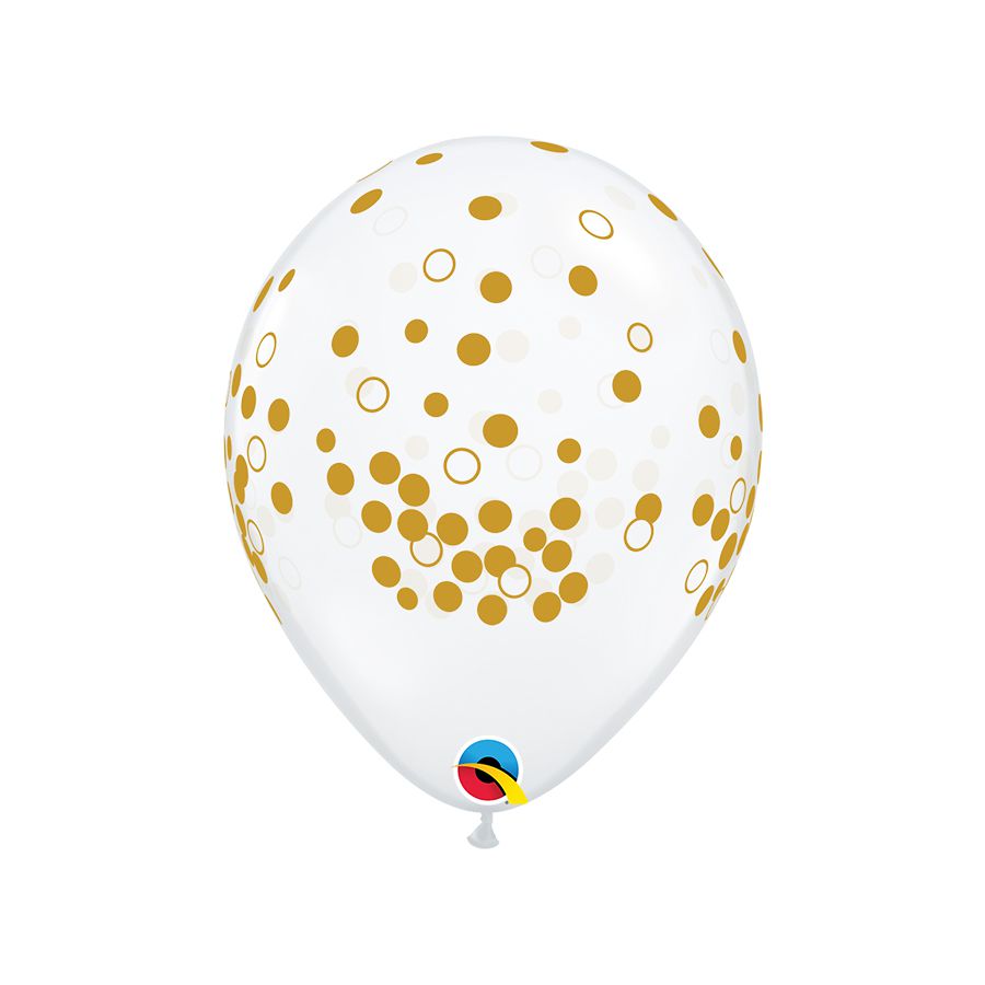 1 pacote com 50 unidades do balão Pontos de Confete Transparente e desenho Dourado.