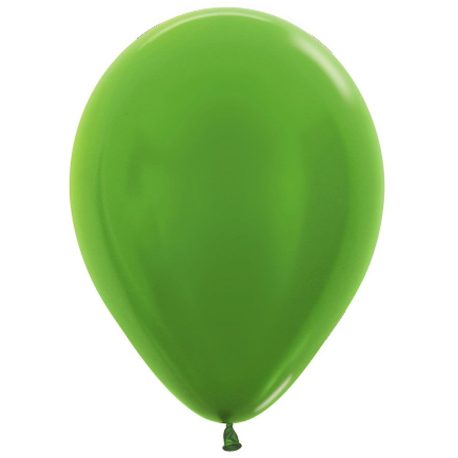 Pacotes de balões Metal na cor verde lima 531. Nos tamanhos 5'' com 13 centímetros, tamanho 12'' com 28 centímetros e tamanho 24'' com 60 centímetros