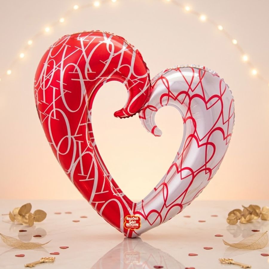 Balão de festa com formato de Coração Vazado na cor vermelho e branco. Os balões são vendidos vazios! Pode ser inflado com gás Hélio (para flutuar) ou com bomba para balões/compressor de ar (para não flutuar). Cuidado com mudanças bruscas de temperatura os Balões podem se expandir ou contrair, provocando alterações na aparência dos balões, dependendo de alguns casos os balões podem deixar de flutuar, ou até estourar.