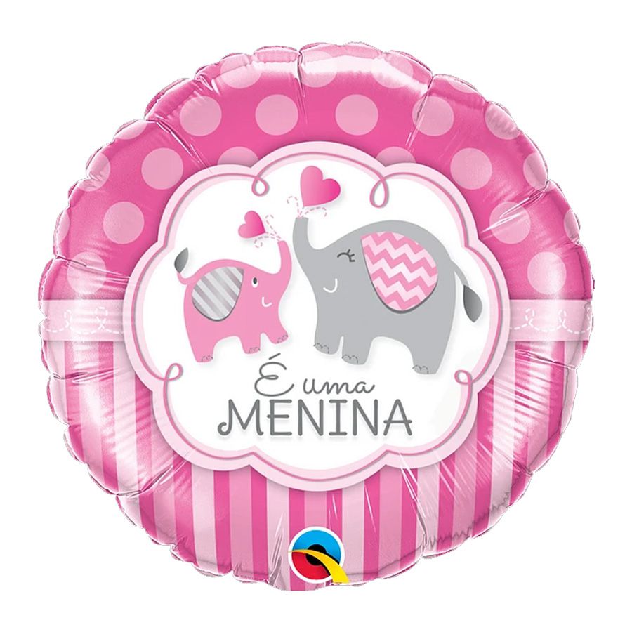 Microfoil 18 polegadas, aproximadamente 45 cm Contém 1 unidade. Balão microfoil no modelo letra redondo "é uma menina" elefante rosa Aqui tudo é de extrema qualidade. Transformamos simples momentos, em grandes realizações.