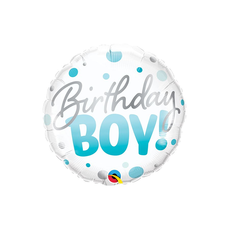 Microfoil 18 polegadas, aproximadamente 46 cm Contém 1 unidade. Balão microfoil no modelo redondo Birthday Boy (Aniversariante) Azul com Pontos. Aqui tudo é de extrema qualidade. Transformamos simples momentos, em grandes realizações.Composição: