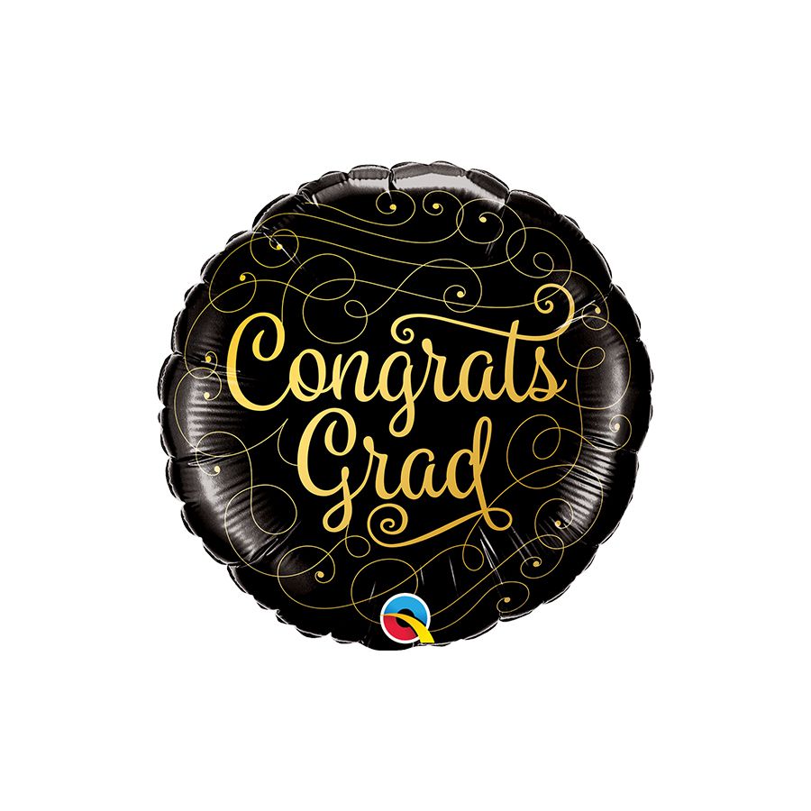Balão microfoil no modelo redondo Congrats Grad (Parabéns Graduado) Rabiscos Dourados.