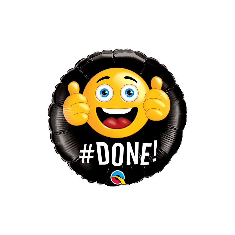 Balão microfoil no modelo Redondo #Done (Feito) com desenho Emoji.