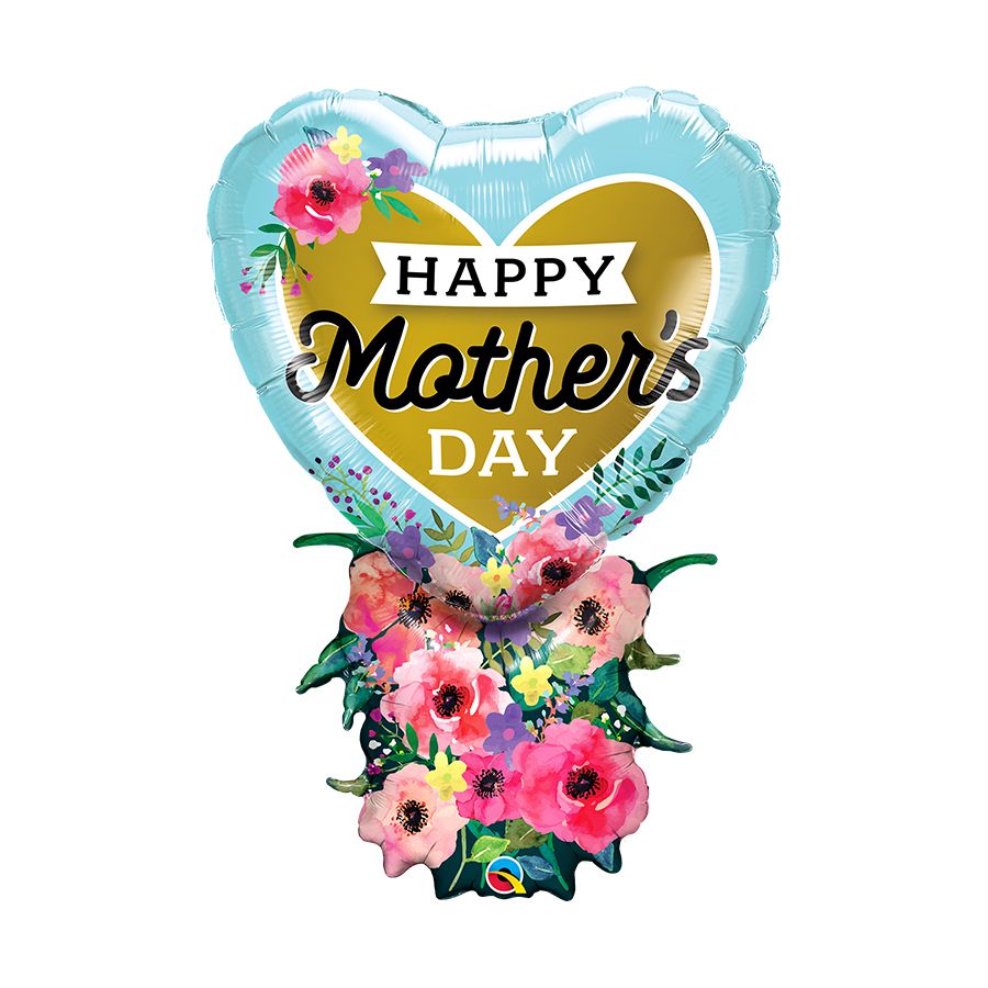 Microfoil 38 polegadas, aproximadamente 97 cm Contém 1 unidade. Balão microfoil no modelo Happy Mother's Day (Feliz Dia das Mães) Coração de Flores. Aqui tudo é de extrema qualidade. Transformamos simples momentos, em grandes realizações.Composição: