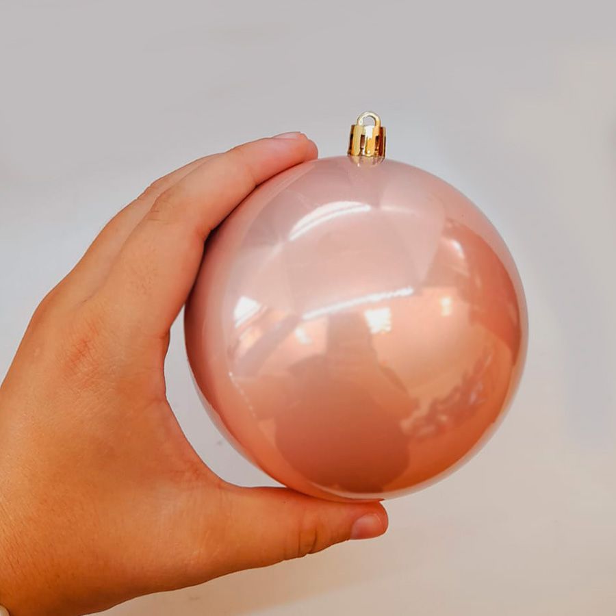 Bolas decorativas de Natal, perolado cor rose gold. Embalagem com 6 unidades de 10 cm de diâmetro cada.
