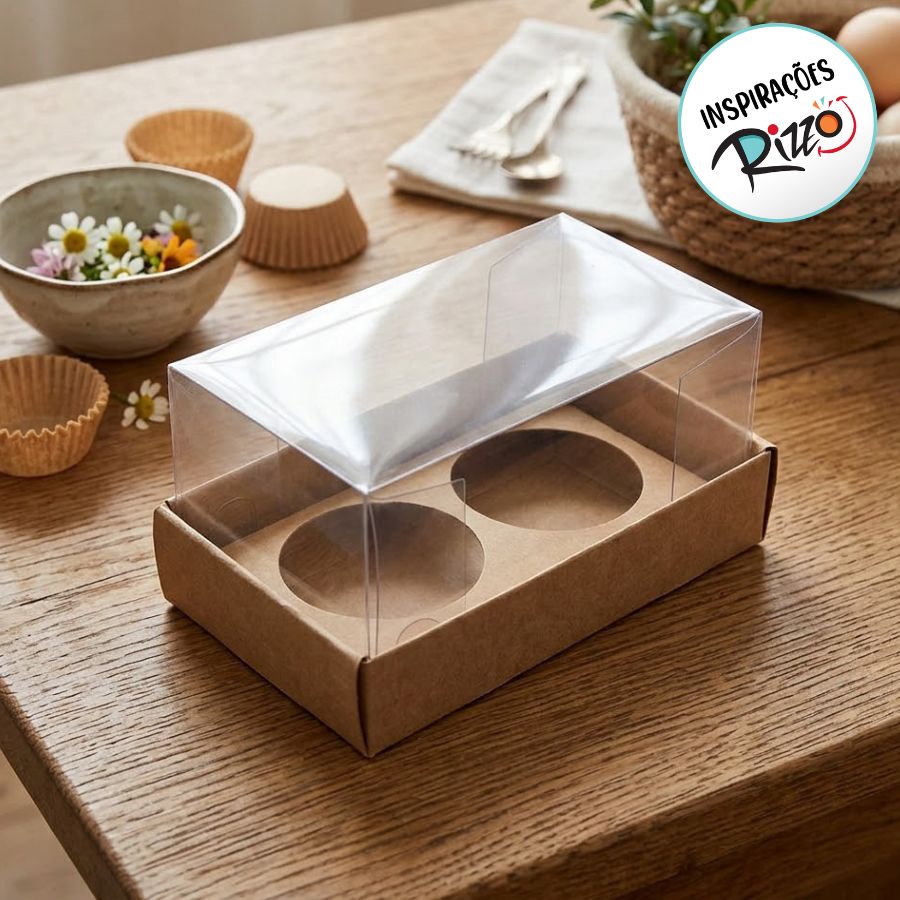 Uma caixa base para brigadeiro na cor kraft contendo duas cavidades