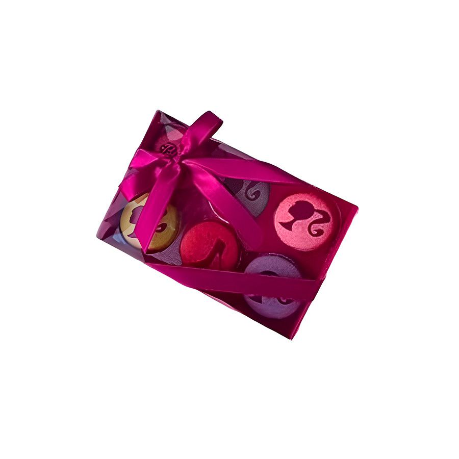 Caixa com berço para 6 macarons pink com tampa de acetato transparente com 4 unidades medindo 16cm x 10,5cm x 3cm