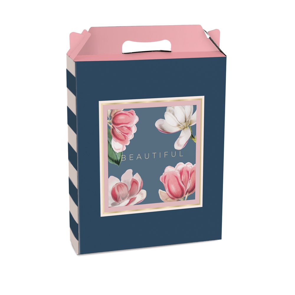 Caixa maleta retângular vertical Pretty Magnolia nas medidas de 15 cm de largura x 21 cm de altura