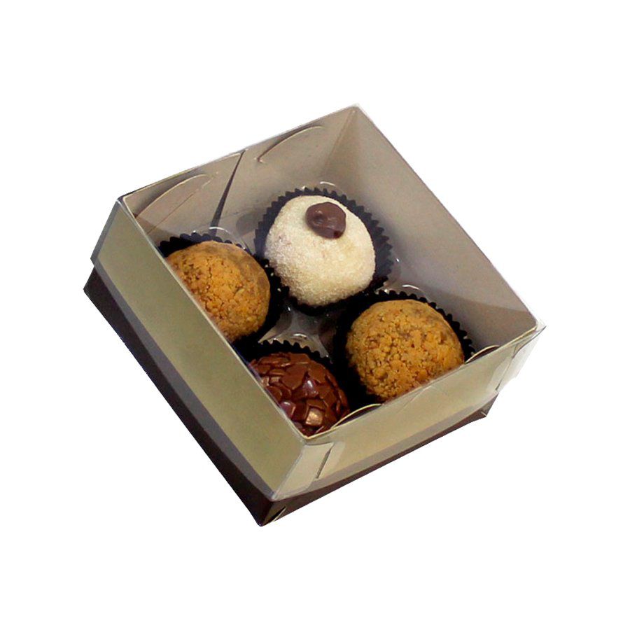 Caixa para 4 Doces: 4 x 8 x 8 cm | 6 Doces: 4 x 12 x 8 cm | 9 Doces: 4 x 12 x 12 cm | 12 Doces: 4 x 16 x 12 cm | 15 Doces: 4 x 19 x 12 cm