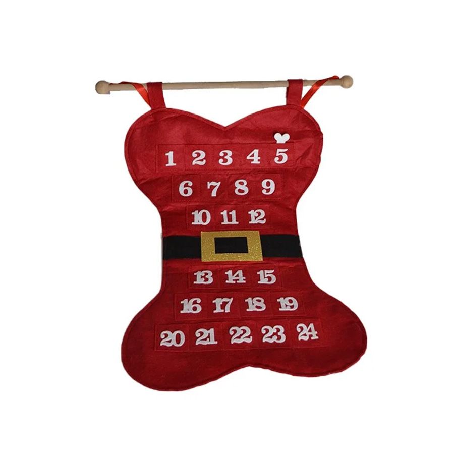 Ossinho Calendário - Vermelho - 60x38cm: Um ossinho decorativo vermelho com as dimensões de 60x38cm, ideal para contar os dias até o Natal de maneira criativa.