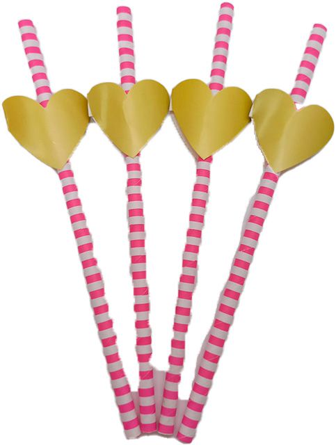 Canudo de Papel Festa de 15 Anos, Rosa e branco com corações dourado.