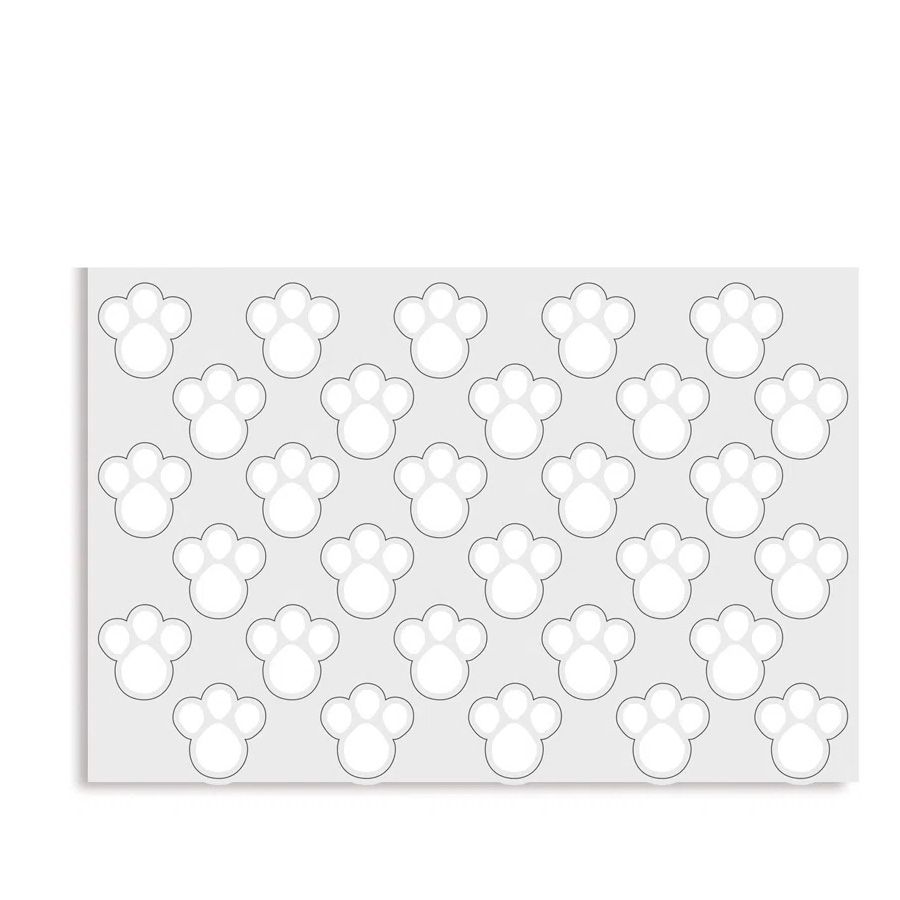 Cartela de pegadas de coelho adesivas contendo 54 unidades.