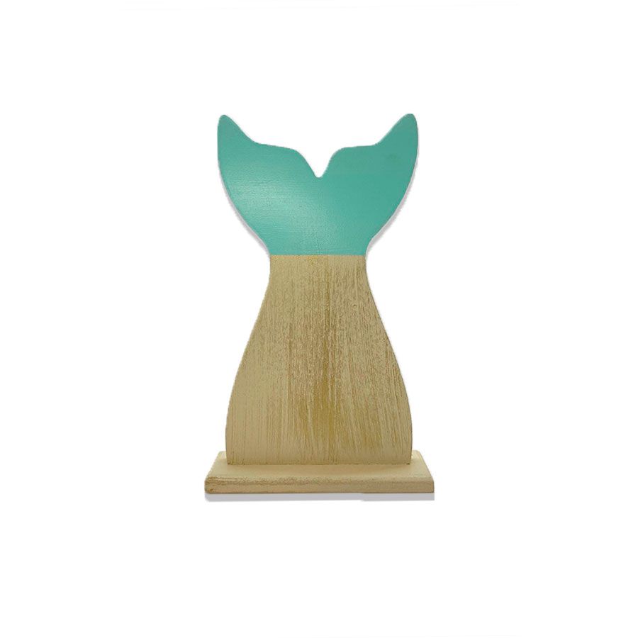 Uma figura em MDF no tamanho P com formato de Cauda de Sereia na cor Ciano