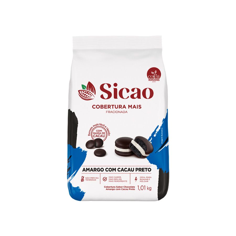 Possui 1 pacote de cobertura mais amargo com cacau preto em gotas 1,010kg