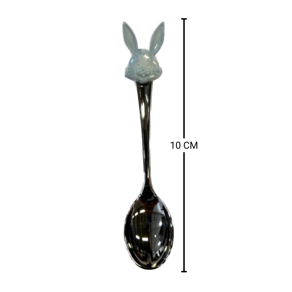 Pacote de colherzinhas de alumínio com decoração tema de Páscoa em plástico.