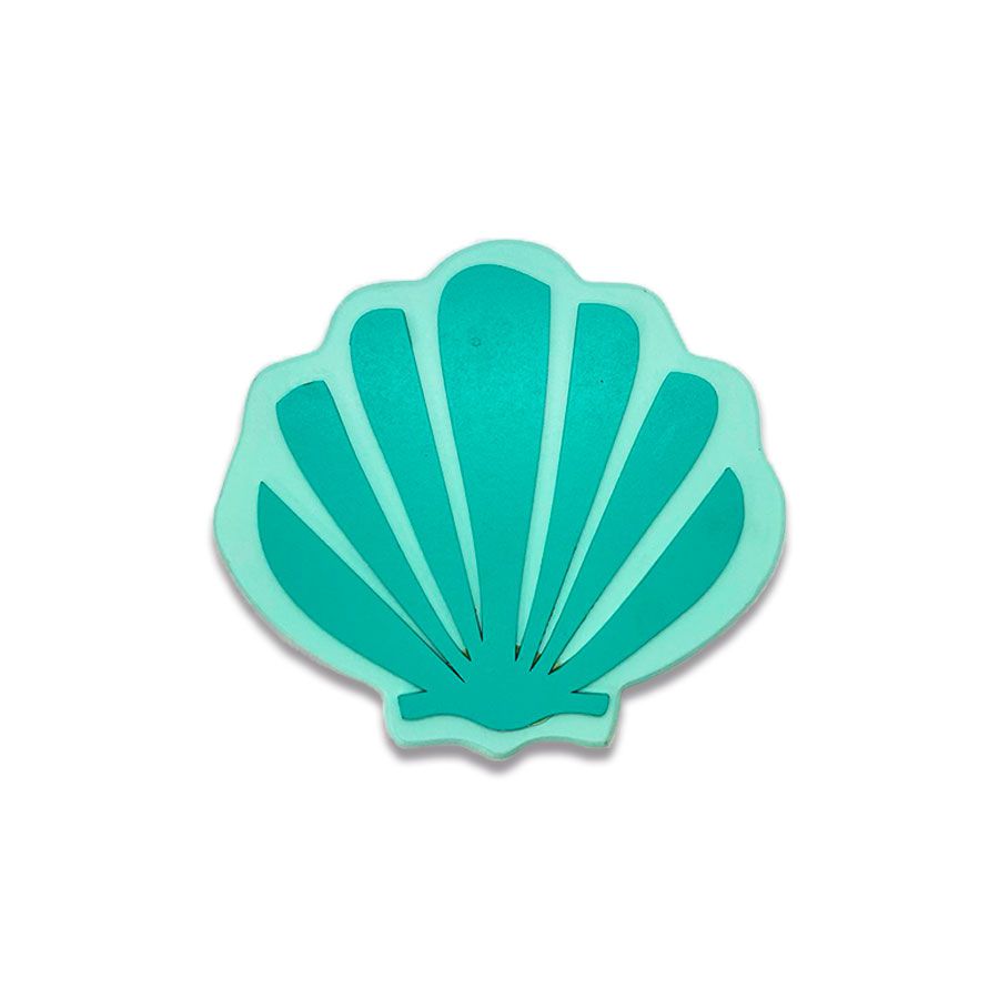 Uma Concha esculpida em MDF com suporte, na cor verde