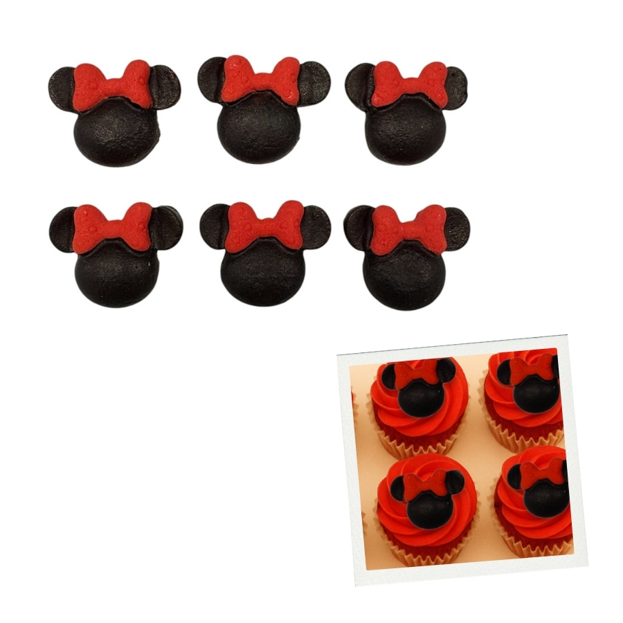 Confeitos de açúcar coloridos artificialmente, com o formato da Minnie, ideal para você fazer lindas decorações em bolos, cupcakes, docinhos e muito mais. Contém 6 unidades. Manter em local seco e longe da umidade e luz direta.