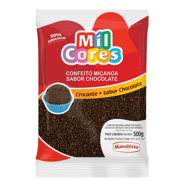 Confeito Miçanga Sabor Chocolate 500 g Mil Cores Mavalério Rizzo Confeitaria
