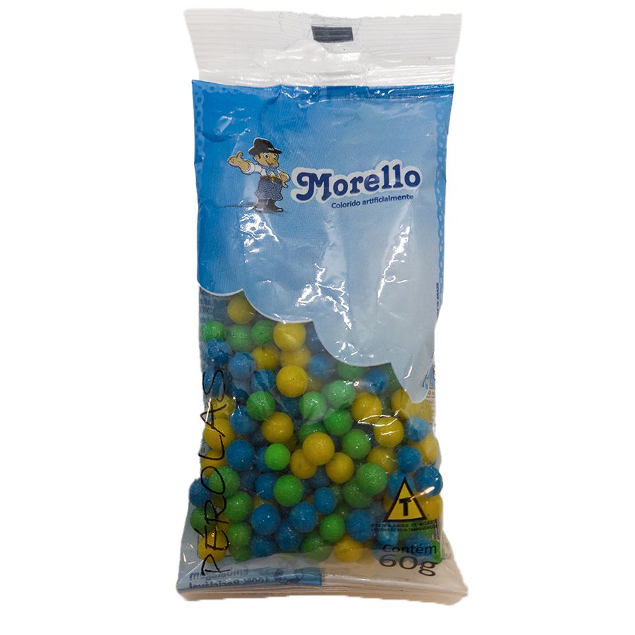 Um pacote com 60 gramas sortido nas cores amarelo, verde e azul.