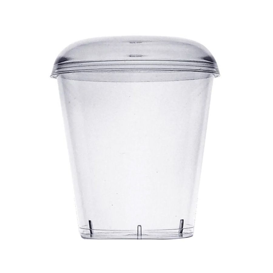 Possui 10 copos plásticos com tampas pet com capacidade de armazenar 40ml
