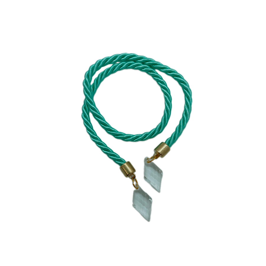 Esse elegante cordão de decoração em verde água com pingente é a escolha perfeita para adicionar um toque de sofisticação e luminosidade a qualquer ambiente. Para compor de forma delicada seus vidros e frascos, este cordão traz um ar de delicadeza e leveza à sua decoração.