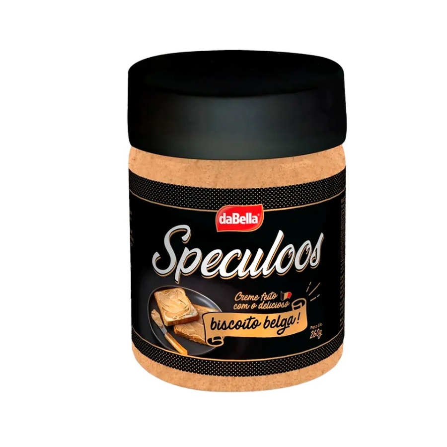 Um pote de creme feito com biscoito belga contendo 260g