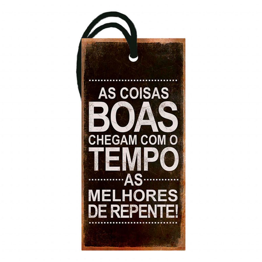 Decor Home Tag com a frase "As Coisas boas chegam com o tempo" nas medidas de 7 cm de largura x 14,3 cm de altura
