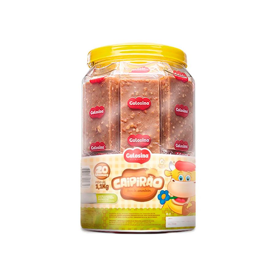 Um pote de 1,1kg contendo 20 unidades de doce de Amendoim Caipirão