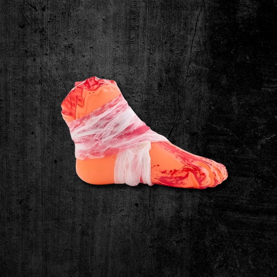 Enfeite Halloween, Pé com Sangue, decoração assustadora, acessório temático, Halloween realista, cenário macabro, item decorativo, Halloween criativo, festa temática, Rizzo.