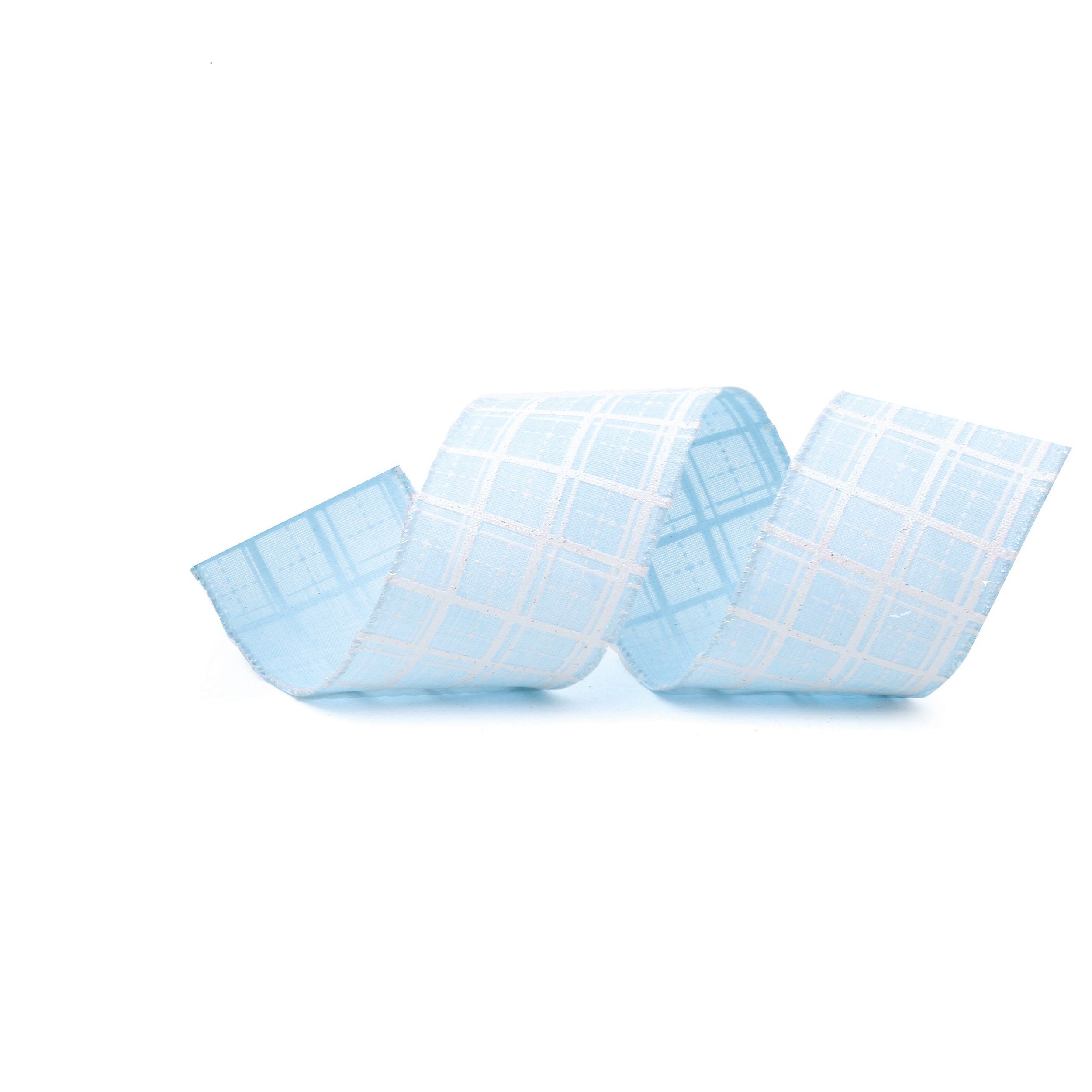 Fita Aramada Azul Claro com Decoração em Branco 6,3cm X 9,14cm - 01 unidade - Cromus Natal - Rizzo