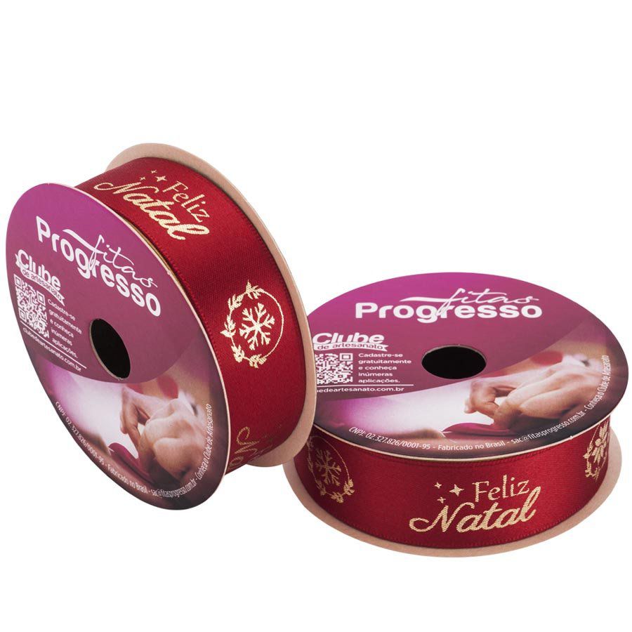 Fita de Cetim ECF003H 22 mm - Cor 869 Feliz Natal - Rolo 10 Metros - 1 unidade - Fitas Progresso - Rizzo Embalagens