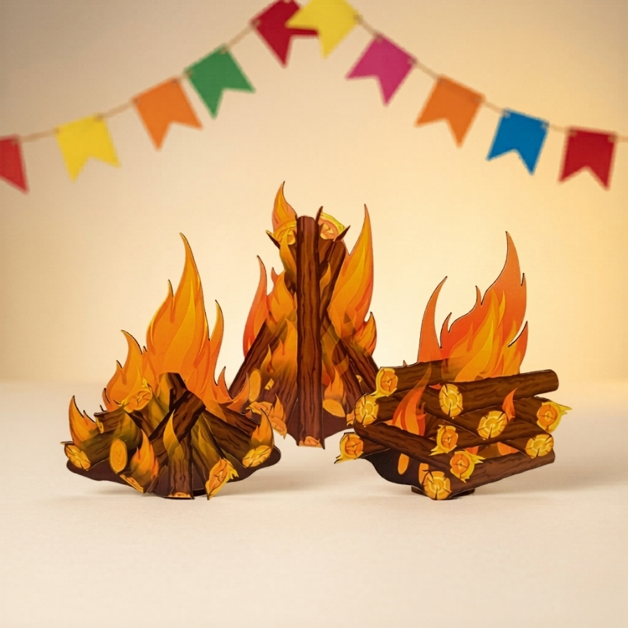 Painéis decorativos com tema de fogueira, ideais para compor cenários juninos, decorar paredes e criar fundos temáticos com praticidade e destaque visual.