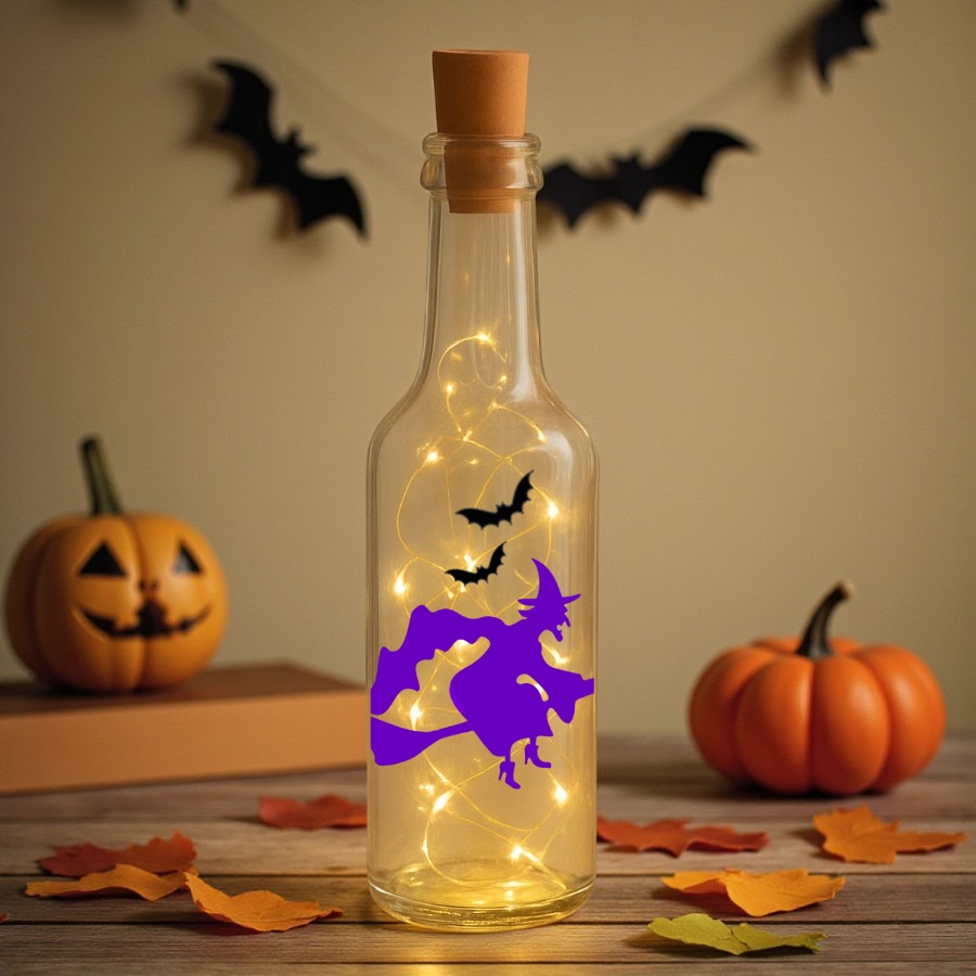 Garrafa Long Neck de Vidro com Rolha LED - Bruxa Halloween - 01 unidade - Rizzo