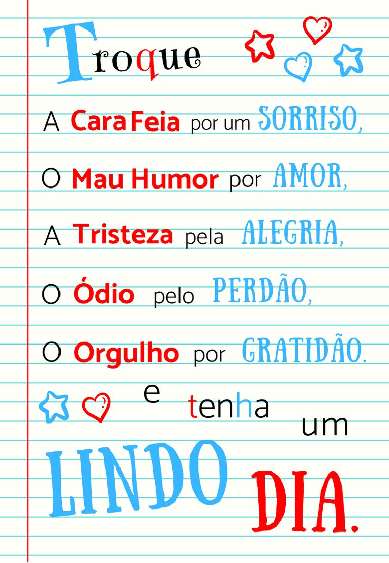 Imã Divertido 1 un. Mod.49 - Troque a cara feia por um sorriso, o mau humor por amor, a tristeza pela alegria, o ódio pelo perdão, o orgulho por gratidão e tenha um Lindo Dia - Nelyzoca Rizzo