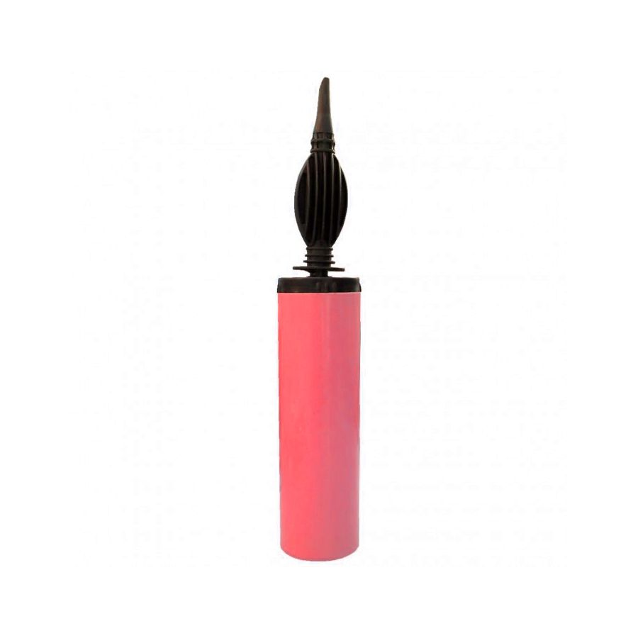 Inflador manual com a base na cor rosa candy e sua ponta na cor preta.