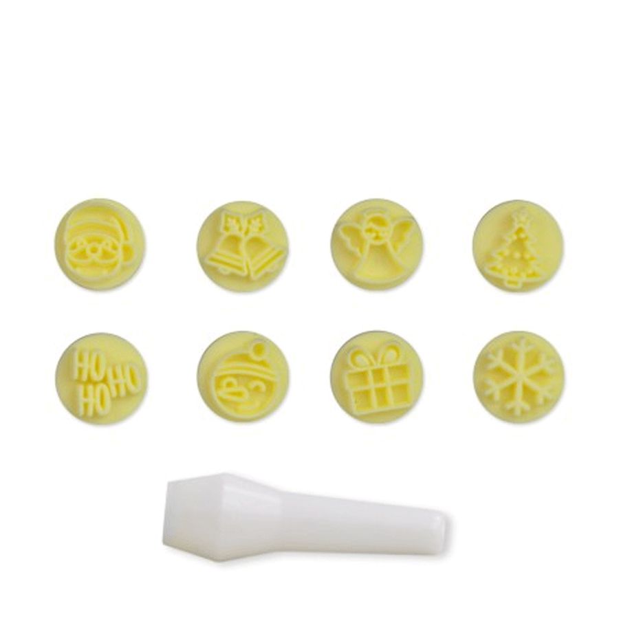 O Kit Mini Carimbos Natal Amarelo, também conhecido como Carimbo para Massas, vem com os símbolos e figuras Natalinas, ele pode ser usado em diversas ocasiões; contanto com 08 carimbos e 01 cabo. Surpreenda seus clientes e convidados!
