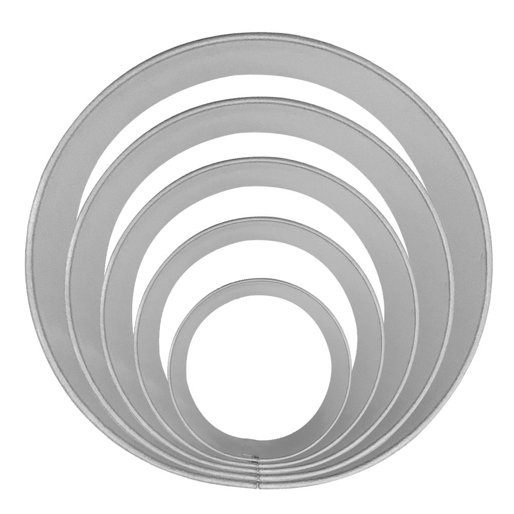 O cortador redondo aro alto mede: 2,5 cm x 4 cm | 3,5 cm x 4 cm | 4,5 cm x 4 cm | 5,5 cm x 4 cm | 6,5 cm x 4 cm.