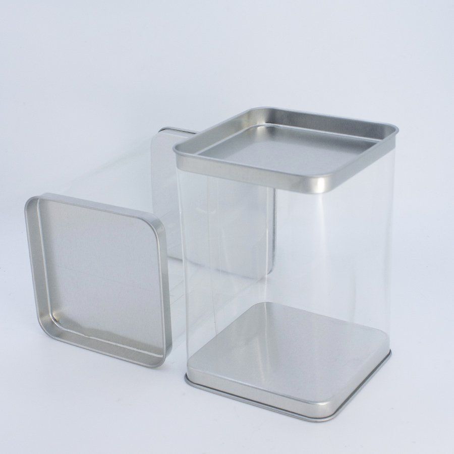 Lata Quadrada em Plástico Transparente com Tampa de Metal Prateada - 8,3 x 8,3 x 11,9 cm - 6 unidades - Art Lille – Rizzo