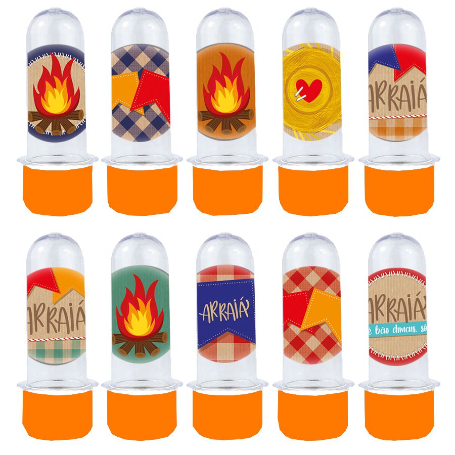 Enfeite sua Festa Junina com essa versátil lembrancinha, mini tubetes que podem ser utilizados para decorar e presentear seus convidados. Utilize-as para servir docinhos, balas e outras guloseimas de sua preferência. Use para guardar lembrancinhas, bijuterias e outros pequenos materiais que possam ser distribuídos em seu Arraiá. Sua prenda de São João estará completa com esta lembrancinha versátil.