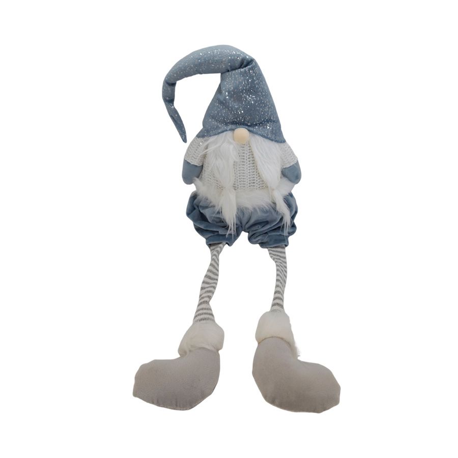 Papai Noel Sentado Azul/Branco - 50cm: Um Papai Noel sentado de 50cm, com traje azul e branco, para uma decoração natalina alegre.