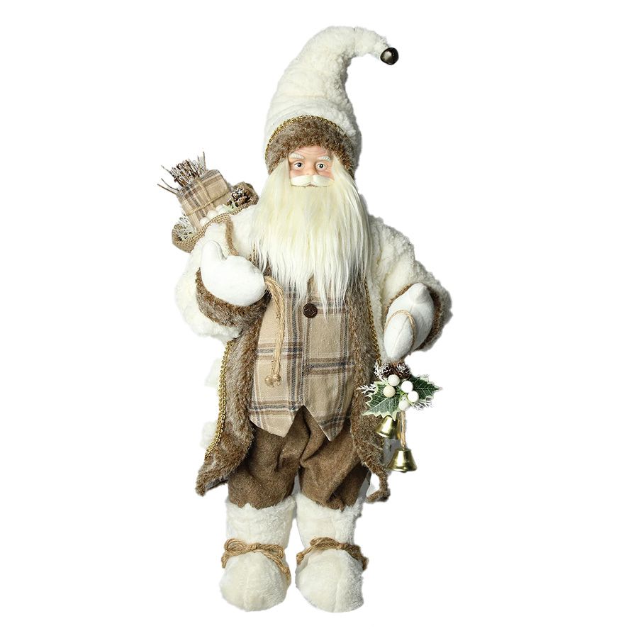 Papai Noel Em Pé Branco/Marrom - 60cm: Um Papai Noel em pé de 60cm, com traje branco e marrom, para um toque elegante na decoração.