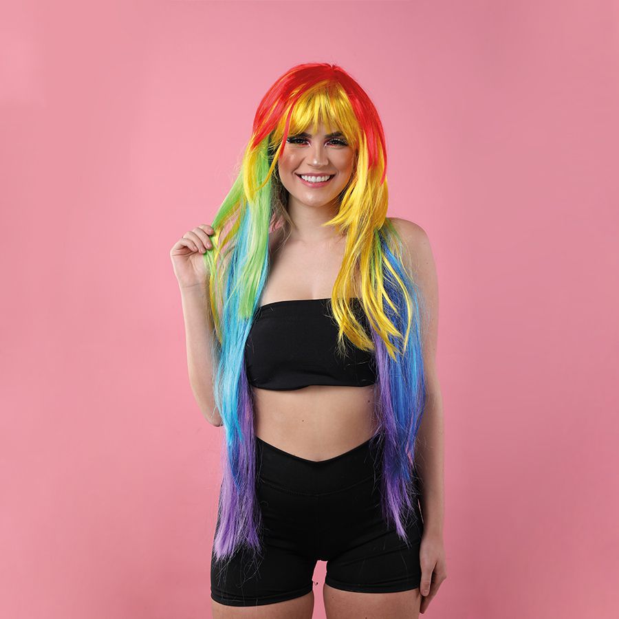 A Peruca Arco-Íris é ideal para compor sua Fantasia, deixando seu look muito mais completo com esse adereço incrível. Vista-se e brilhe com esta peça colorida em sua composição.