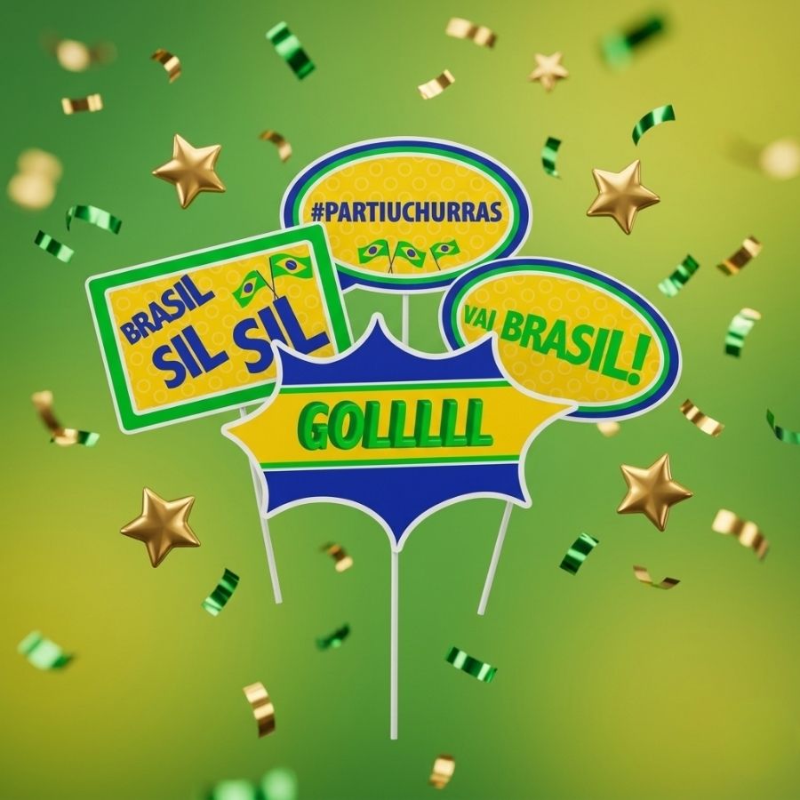 As Plaquinhas Divertidas Sortidas para Foto Festa Brasil Cromus com 8 Unidades são perfeitas para deixar fotos mais criativas, engraçadas e interativas em festas e eventos temáticos. Com frases divertidas e visual nas cores do Brasil, são ideais para comemorações da Copa do Mundo, aniversários, confraternizações e encontros entre amigos, garantindo momentos descontraídos e memoráveis.