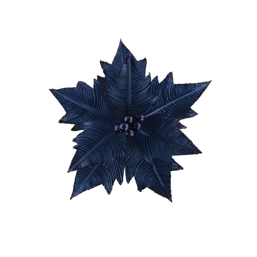 Poinsetia Decorativa na cor azul com glitter e cabo marrom